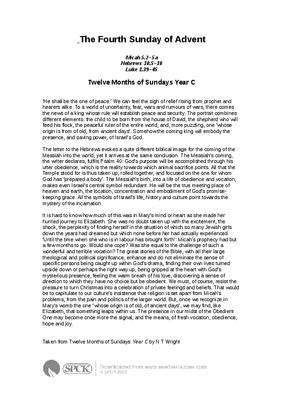 ‘He shall be the one of peace.’ We can feel the sigh of relief rising from prophet and hearers alike. To a world of uncertainty, fear, wars and rumours of wars, there comes the news of a king whose rule will establish peace and security. The portrait combines different elements: the child to be born from the house of David, the shepherd who will feed his flock, the peaceful ruler of the entire world, and, more puzzling, one ‘whose origin is from of old, from ancient days’. Somehow the coming king will embody the presence, and saving power, of Israel’s God...