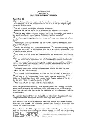 Taken from Lent for Everyone Mark Year B by Tom Wright