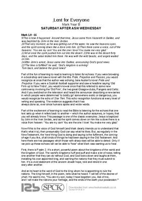 Taken from Lent for Everyone Mark Year B by Tom Wright