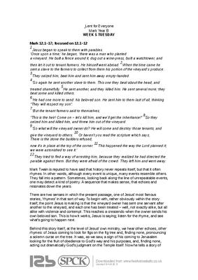 Taken from Lent for Everyone Mark Year B by Tom Wright