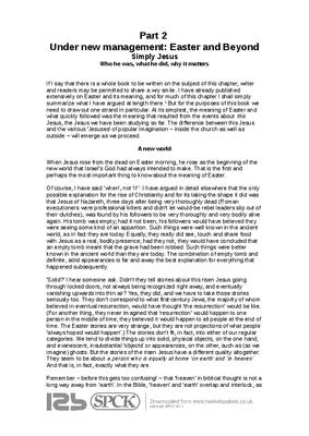 If I say that there is a whole book to be written on the subject of this chapter, writer and readers may be permitted to share a wry smile. I have already published extensively on Easter and its meaning, and for much of this chapter I shall simply summarize what I have argued at length there.1 But for the purposes of this book we need to draw out one strand in particular. At its simplest, the meaning of Easter and what quickly followed was the meaning that resulted from the events about this Jesus, the Jesus we have been studying so far. The difference between this Jesus and the various ‘Jesuses’ of popular imagination – inside the church as well as outside – will emerge as we proceed...