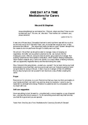 Taken from One Day at a Time: Meditations for Carers by Dorothy M.Stewart