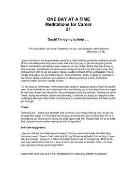 Taken from One Day at a Time: Meditations for Carers