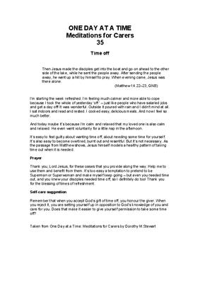 Taken from One Day at a Time: Meditations for Carers by Dorothy M.Stewart