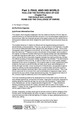 The caution which Augustus displayed over any claims to divinity in Rome was not matched either by his keenest followers at home or by his enthusiastic supporters in the provinces. Both are important as part of the larger context for the various Rome- and emperor-related cults which shaped the world where Paul announced Jesus as lord...