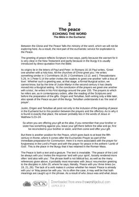 Between the Gloria and ‘the Peace’ falls the ministry of the word, which we will not be exploring here. As a result, the next part of the eucharistic service for exploration is the Peace…