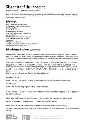 Each of the following sketches (scenes) can be used to form the basis for a complete act of worship or used as individual scenes on separate occasions. Each scene will require a narrator to read the linking text as well as the characters in the scene itself.