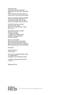 Anyway, on that first day there was light.