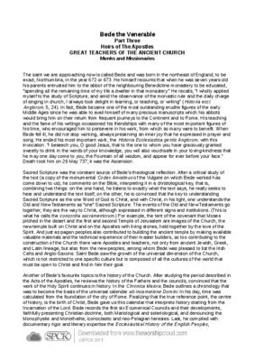 The saint we are approaching now is called Bede and was born in the northeast of England; to be exact, Northumbria, in the year 672 or 673. He himself recounts that when he was seven years old his parents entrusted him to the abbot of the neighbouring Benedictine monastery to be educated, “spending all the remaining time of my life a dweller in that monastery.” He recalls, “I wholly applied myself to the study of Scripture; and amid the observance of the monastic rule and the daily charge of singing in church, I always took delight in learning, or teaching, or writing” (Historia eccl. Anglorum, 5, 24)…