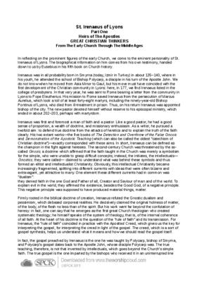 In reflecting on the prominent figures of the early Church, we come to the eminent personality of St. Irenaeus of Lyons. The biographical information on him comes from his own testimony, handed down to us by Eusebius in his fifth book on Church history…