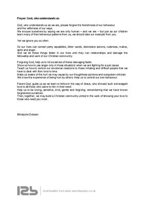 God, who understands us as we are, please forgive the foolishness of our behaviour