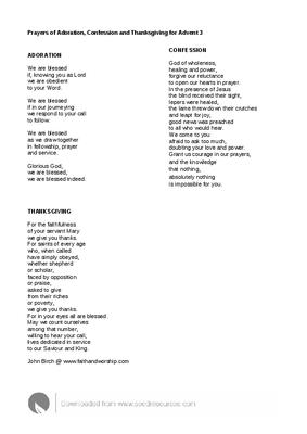 Prayers of Adoration, Confession and Thanksgiving for Advent 3
