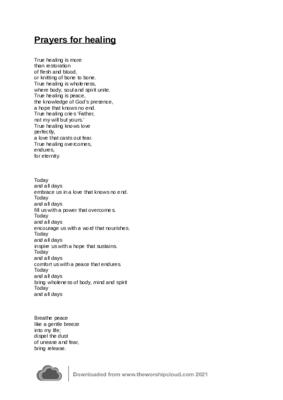 Prayers for healing and wholeness in our lives, and a reminder that healing is more than just a cure for the particular illness that affects us now, it affects body, mind and spirit - it's about knowing peace and assurance in our lives, despite the situation we find ourselves in at the present moment.