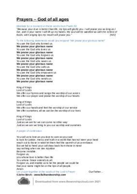 Opening prayers to help the leader of worship. A Scripture verse, a prayer of adoration and one of confession.