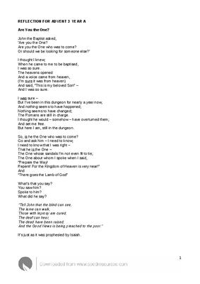 John the Baptist reflects while in prison. 'Are you the One?' he wants to ask Jesus