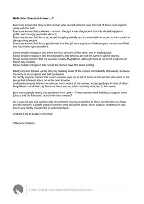 Everyone knows the story of the woman who poured perfume over the feet of Jesus and wiped it away with her hair.