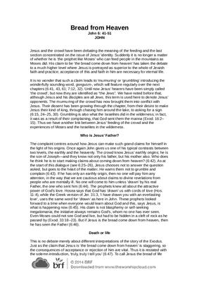 Jesus and the crowd have been debating the meaning of the feeding and the last section concentrated on the issue of Jesus’ identity. Suddenly it is no longer a matter of whether he is ‘the prophet like Moses’ who can feed people in the mountains as Moses did. His claim to be ‘the bread come down from heaven’ has taken the debate to a much higher level where Jesus is portrayed as superior to the whole of Jewish faith and practice; acceptance of this and faith in him are necessary for eternal life…