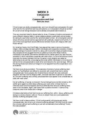 If God is seen as wholly compassionate, we in turn should have compassion for each other and for the world that God has entrusted to us. Compassion should be central for us as human beings because God is already compassionate towards us.