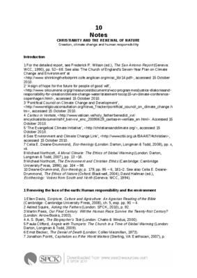 1 For the detailed report, see Frederick R. Wilson (ed.), The San Antonio Report (Geneva: WCC, 1990), pp. 52– 68. See also ‘The Church of England’s Seven-Year Plan on Climate Change and Environment’ at http://www. shrinkingthefootprint.cofe.anglican.org/misc_lib/14.pdf, accessed 15 October 2010…