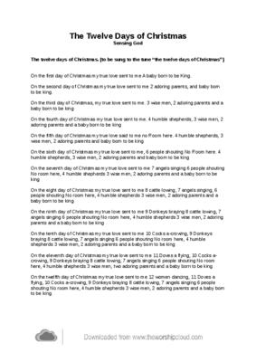 The twelve days of Christmas. (to be sung to the tune “the twelve days of Christmas”)