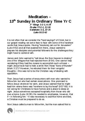 Meditation – 13th Sunday in Ordinary Time Yr C