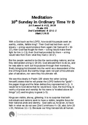 Meditation - 10th Sunday in Ordinary Time Yr B