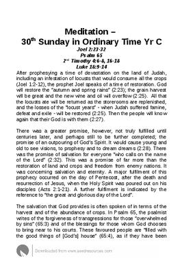 Meditation – 30th Sunday in Ordinary Time Yr C