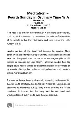 Meditation – Fourth Sunday in Ordinary Time Yr A