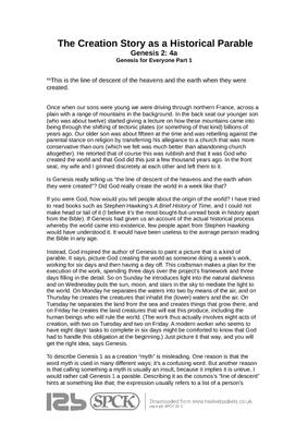 Once when our sons were young we were driving through northern France, across a plain with a range of mountains in the background. In the back seat our younger son (who was about twelve) started giving a lecture on how these mountains came into being through the shifting of tectonic plates (or something of that kind) billions of years ago. Our older son was about fifteen at the time and was rebelling against the parental stance on religion by transferring his allegiance to a church that was more conservative than ours (which we felt was much better than abandoning church altogether). He retorted that of course this was rubbish and that it was God who created the world and that God did this just a few thousand years ago. In the front seat, my wife and I grinned discretely at each other and left them to it...