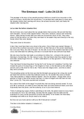 This reflection explores the significance of the encounter of Jesus with two travellers on the Emmaus road. It has a before during and after structure, within which its significance four Christians today is highlighted.