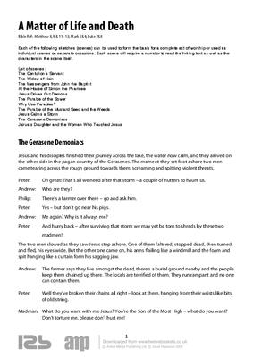Each of the following sketches (scenes) can be used to form the basis for a complete act of worship or used as individual scenes on separate occasions. Each scene will require a narrator to read the linking text as well as the characters in the scene itself.