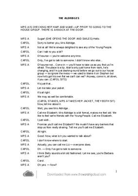 MRS A Of course not... Come in — you’ll have to take us as you find us I’m afraid. The place is a tip. Alan’s only just home from work, he’s changing, and I’m just dashing round before we go out to our house group — so ignore the mess — we used to blame it on Stephen but now he’s got his own flat we can’t can we? Anyway, come in, sit down, if you can. (CAROL SITS)