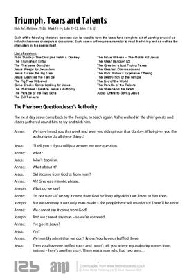Each of the following sketches (scenes) can be used to form the basis for a complete act of worship or used as individual scenes on separate occasions. Each scene will require a narrator to read the linking text as well as the characters in the scene itself.