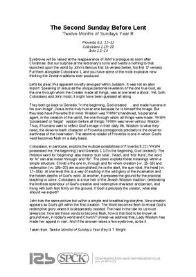 Taken from Twelve Months of Sundays Year B by N T Wright