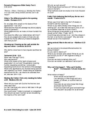 Each theme will have a different Bible passage (or 2) followed by some questions.