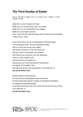 Abide with us Lord, throughout this day. Abide with us in our journeying, and in our homes. Abide with us in our seeking and in our longings. Abide with us now and to eternity, Jesus, risen Lord, who lives and reigns with the Father and the Holy Spirit in glory for ever. Amen...