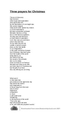 Three Prayers for Christmas, either for Church or small study groups.