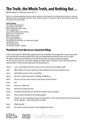Each of the following sketches (scenes) can be used to form the basis for a complete act of worship or used as individual scenes on separate occasions. Each scene will require a narrator to read the linking text as well as the characters in the scene itself.