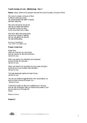 Full Service - Fourth Sunday of Lent – [Mothering] - Year C