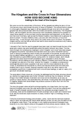 We come now to the central claim of this book. All four gospels are telling the story of how God became king in and through this story of Jesus of Nazareth. This central theme is stated in a thoroughly integrated way, again in all four gospels (though not at all in the so-called