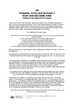 This is how it works. First, the vision. Daniel has a dream of four monsters trampling the earth in great wickedness and violence. Then a court scene develops in heaven: ‘Thrones were set in place, and an Ancient One took his throne’ (7.9)…
