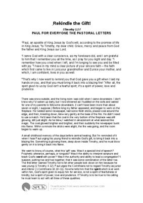 This still doesn’t tell us what gifts Timothy had been given, which he is now to stir up and rekindle. But it strongly suggests that they had to do with leading the young church, giving it wise teaching and direction.