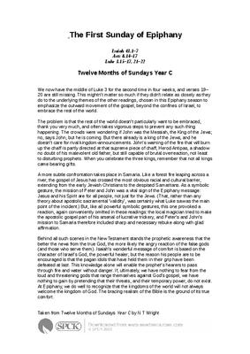 We now have the middle of Luke 3 for the second time in four weeks, and verses 19–20 are still missing. This mightn’t matter so much if they didn’t relate as closely as they do to the underlying themes of the other readings, chosen in this Epiphany season to emphasize the outward movement of the gospel, beyond the confines of Israel, to embrace the rest of the world.