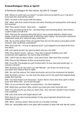 ONE: Where on earth have you been? I've been sent out to look for you! If we don't hurry back the meal will be ruined!