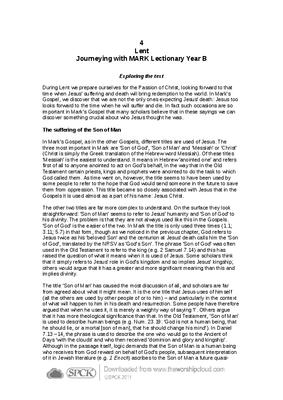 During Lent we prepare ourselves for the Passion of Christ, looking forward to that time when Jesus’ suffering and death will bring redemption to the world. In Mark’s Gospel, we discover that we are not the only ones expecting Jesus’ death: Jesus too looks forward to the time when he will suffer and die. In fact such occasions are so important in Mark’s Gospel that many scholars believe that in these sayings we can discover something crucial about who Jesus thought he was...