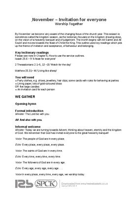 December brings us to the beginning of the church year, but for the vast majority of people it brings us to Christmas. The challenge is to use the lectionary to recapture a sense of Advent, of preparing for the coming of Christ as infant and later as king. It is also about preparing our own lives, ready to welcome Jesus once again. This worship outline draws on Advent themes and readings, especially the person of John the Baptist, to explore preparation and promise...