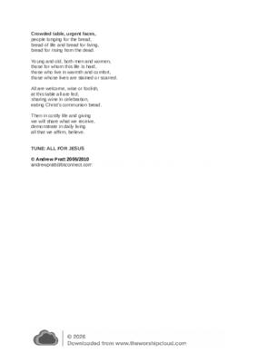 Crowded table, urgent faces - Post Easter Communion Hymn