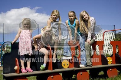 • Two boys playing bouncy castle May Day Woodmancote Cheltenham UK