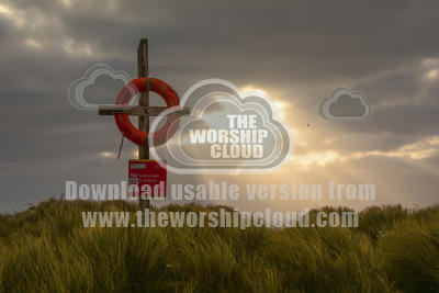 Light shining in the darkness, behind a life saving ring, mounted on a cross.