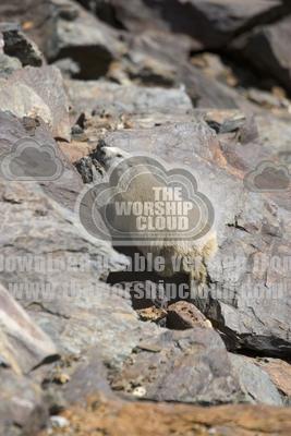 Marmot Marmota marmota - a large rodent weighing up to 8 kgs on a rock outcrop in Pyrenees, France